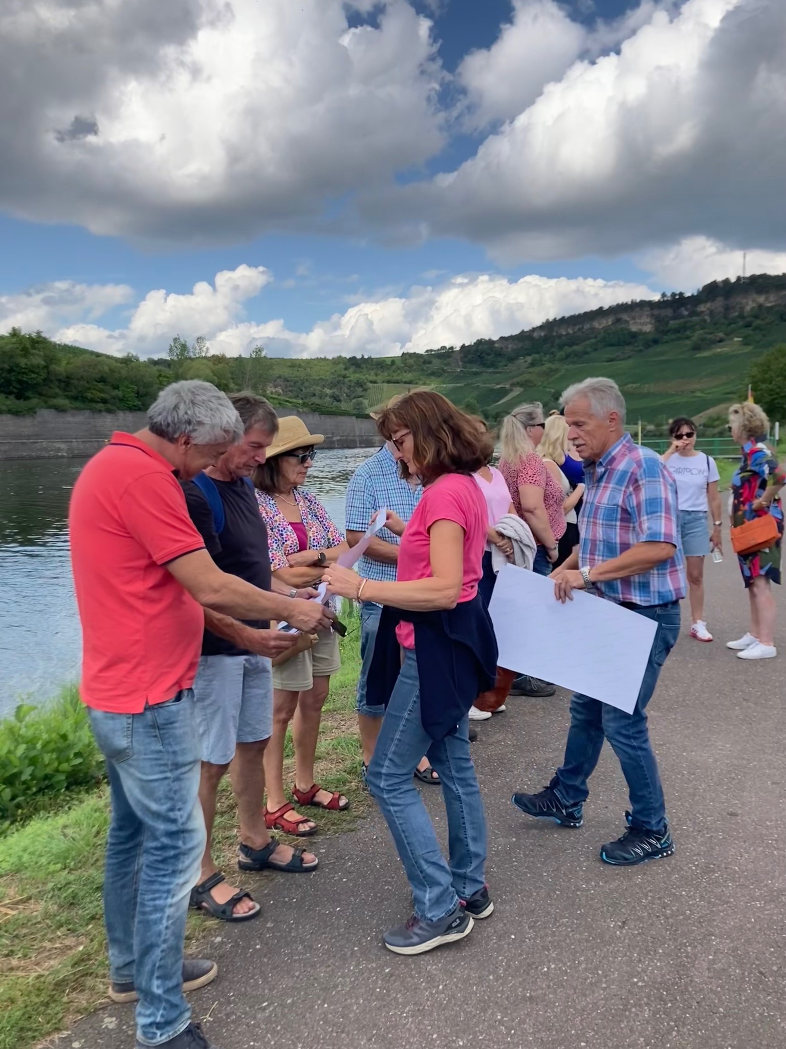 An der Mosel angekommen wurden an Hand von Fotos die verschiedenen Gesichter der Mosel, bei Hochwasser, bei Niedrigwasser und vor deren Kanalisation in den 1960er Jahren gezeigt und die Auswirkungen auf die Menschen die in Nittel lebten verdeutlicht. Zunächst wurde die Mosel betrachtet und mehrere Fotos belegten, dass die Mosel sehr unterschiedliche Gesichter zeigen kann.