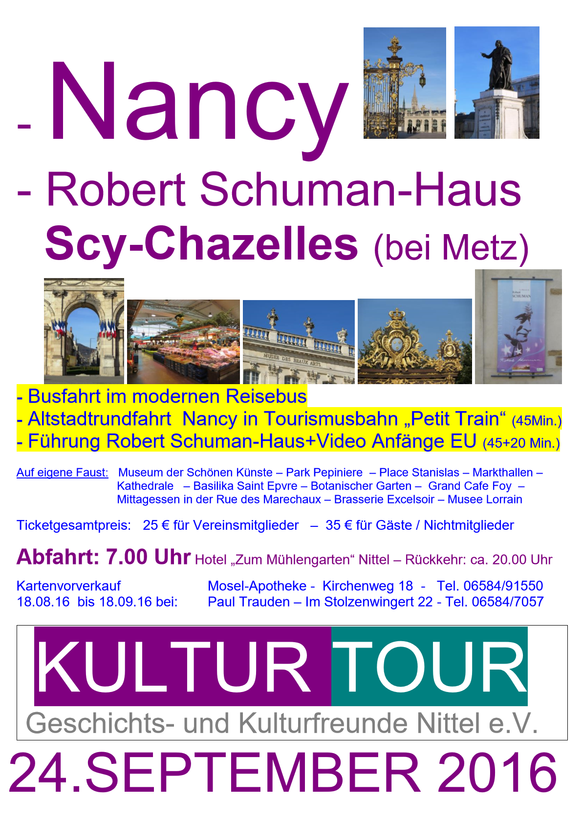 24. September 2016 Bushaltestelle Mühlengarten Nittel, Abfahrt 07:00 Uhr