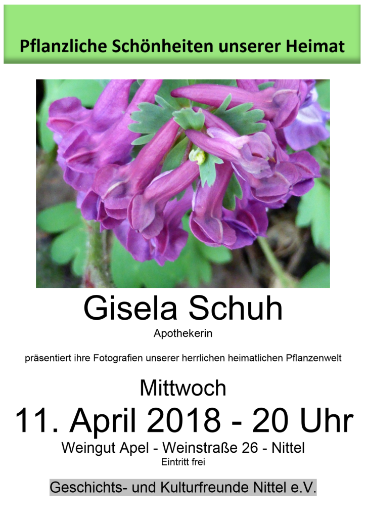 Gisela Schuh, Apothekerin, präsentierte Fotografien unserer herrlichen heimatlichen Pflanzenwelt.