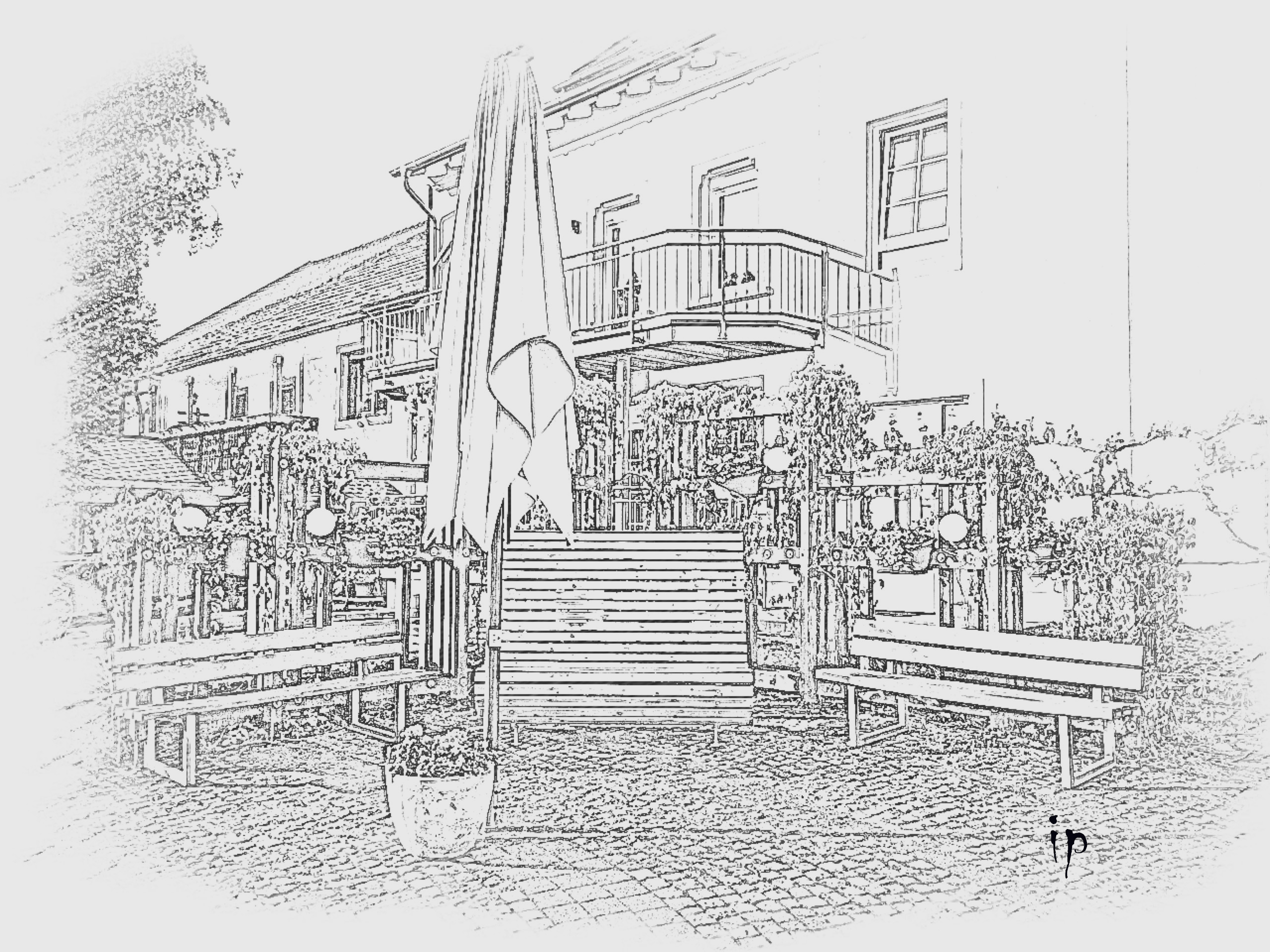 Schön dekoriert mit Blumen, Sonnenschirm und Bänken dient der Dorfplatz als Treff- und Begegnungspunkt des Dorfes und als berühmter Mittelpunkt der beliebten Nitteler St. Rochus Weinkirmes jeweils am dritten Augustwochenende jeden Jahres.