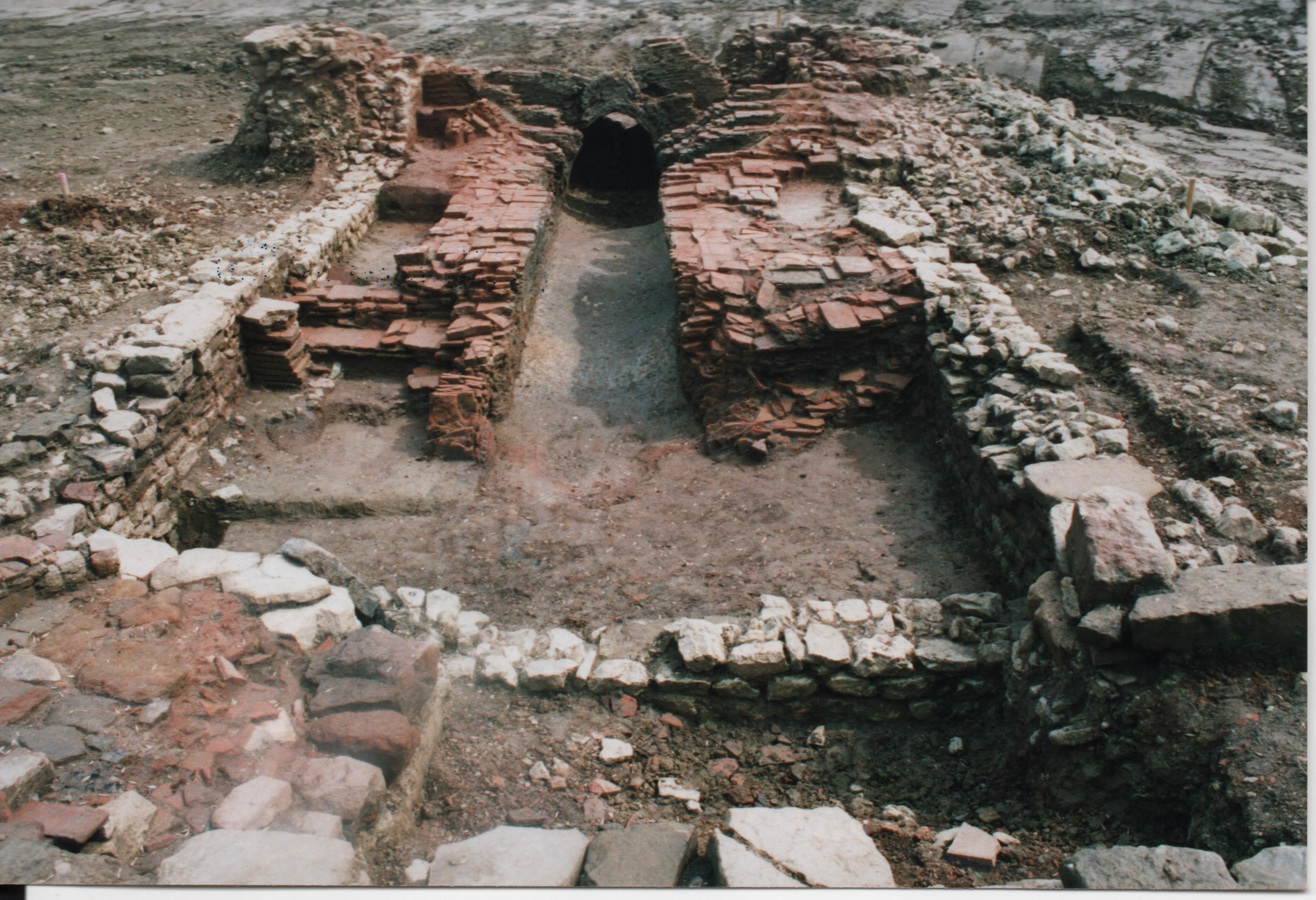 Der sichtbare Durchgang in der Mitte des Bildes ist der ehemalige Feuerschacht, der, wie noch zum Teil erkennbar, mit einer runden Abdeckung versehen war. Darüber befand sich das Gebäude, in dem die Ziegel lagerten, die gebrannt wer-den sollten.